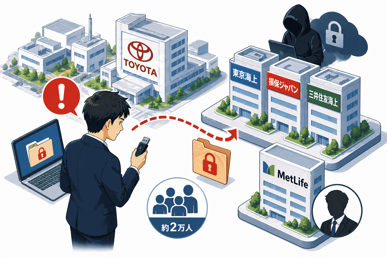 連日ニュースで報じられている大手損害保険会社による情報漏えい問題。「金融庁から厳しい行政処分を受けたはずでは?」と疑問に思う方も多いはずです。しかし2026年4月24日、三井住友海上火災保険とあいおいニッセイ同和損害保険が処分を受けた「後」にも、出向社員がトヨタ自動車の顧客情報を無断で持ち出していたという衝撃的な事実が発覚しました。