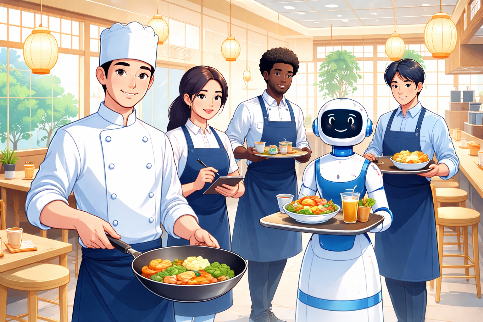 人間の働き手が雇えない以上、企業は生き残るためにテクノロジーへ投資するしかありません。客席のタブレット注文やセルフレジはすでに普及していますが、これからは厨房内での「自動調理ロボット」や、通路を行き交う「配膳ロボット」の導入が爆発的に進みます。店内にいる人間のスタッフは、機械のエラー対応や複雑なトラブル処理を行う数名のみ、という完全な省人化店舗が今後のスタンダードとして定着していくことになります。