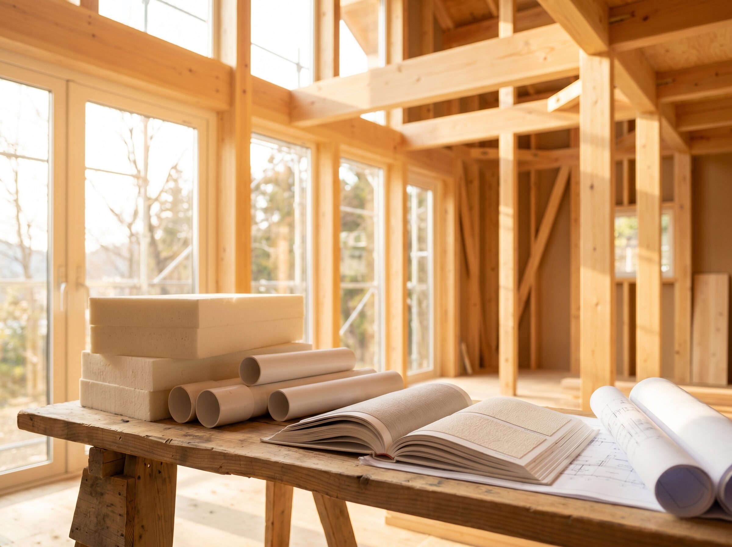 高気密・高断熱を求める現代の住宅建築において、ウレタンフォームやポリスチレンフォームといった石油由来の断熱材は必須の部材です。これらを別の素材へ全量切り替えるには、壁の厚みや住宅の基本設計そのものを根本から見直す必要があります。