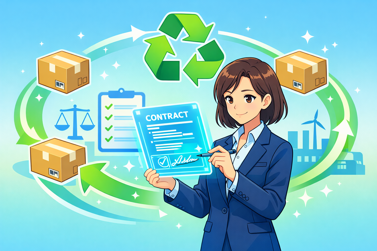 | 2. サプライチェーンの契約書改定 | 廃棄物処理法の特例を活用した回収スキームを設計。同時に、運送業者や委託先との基本契約書を改定し、下請法やフリーランス新法を遵守した「適正な対価と業務範囲」を明文化する。 | 法務・物流・購買部門 |