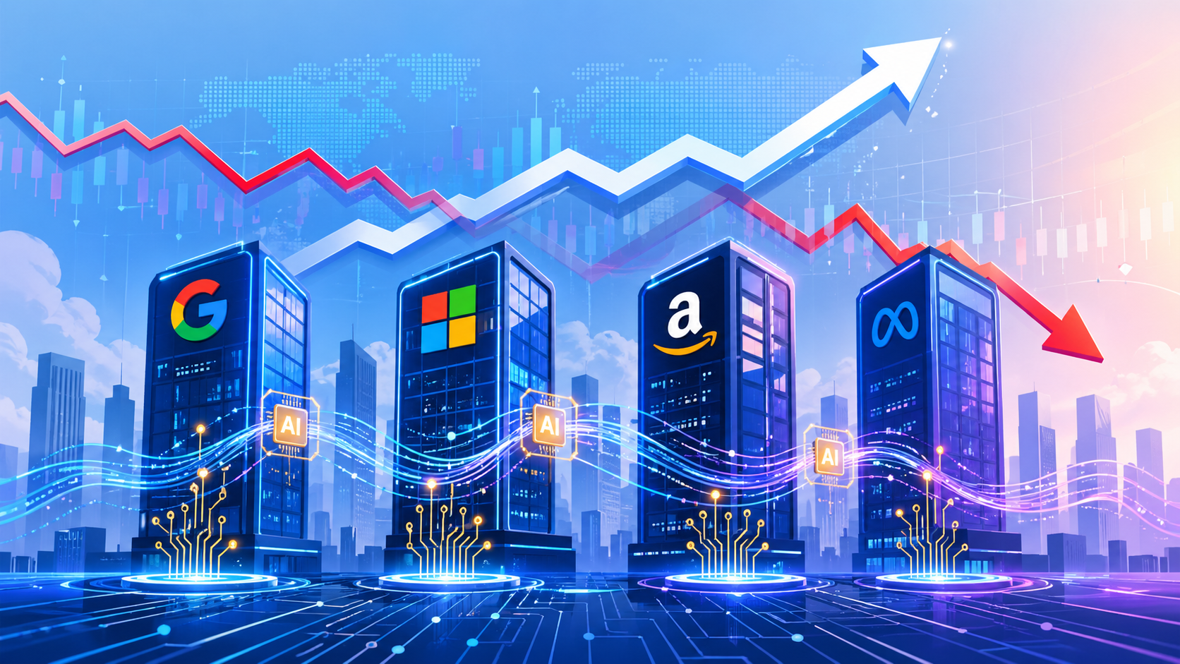 2026年4月29日(現地時間)、アルファベット(Google)・マイクロソフト・アマゾン・メタの4社が、ほぼ同時刻に2026年第1四半期(1月〜3月)の決算を発表しました。4社すべてがウォール街のアナリスト予想を上回る「好決算」を叩き出したにもかかわらず、株価は下落したり、上昇幅が限定されたりしました。「好決算なのに株が下がる」という一見矛盾した現象——その裏に何があるのか? 本記事では、この4社の決算が映し出す「AI投資競争の実態」と、それが私たちの生活・経済にどう影響するかを深く掘り下げます。