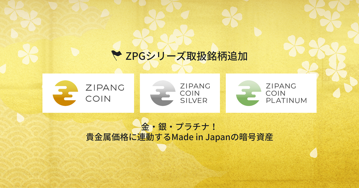 金・銀・プラチナに連動する暗号資産 「ジパングコイン(ZPG)」シリーズ取扱開始のお知らせ ~販売所にて