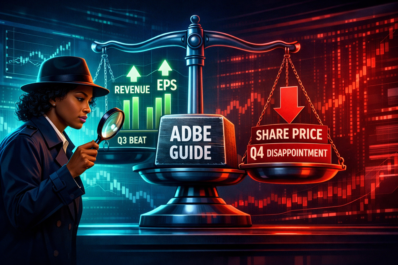 米国株投資を始めたばかりの方にとって、企業の業績発表(決算)は非常に難解なイベントに見えることがあります。特に、メディアが「市場予想を上回る好決算(ビート)」と報じているにもかかわらず、その企業の株価が急落するという事象は、大きな違和感を生むはずです。2024年9月に発表された、クリエイティブ・ソフトウェアの王者、アドビ(ADBE)の2024年度第3四半期(Q3:6-8月期)決算は、まさにその典型的な事例となりました。