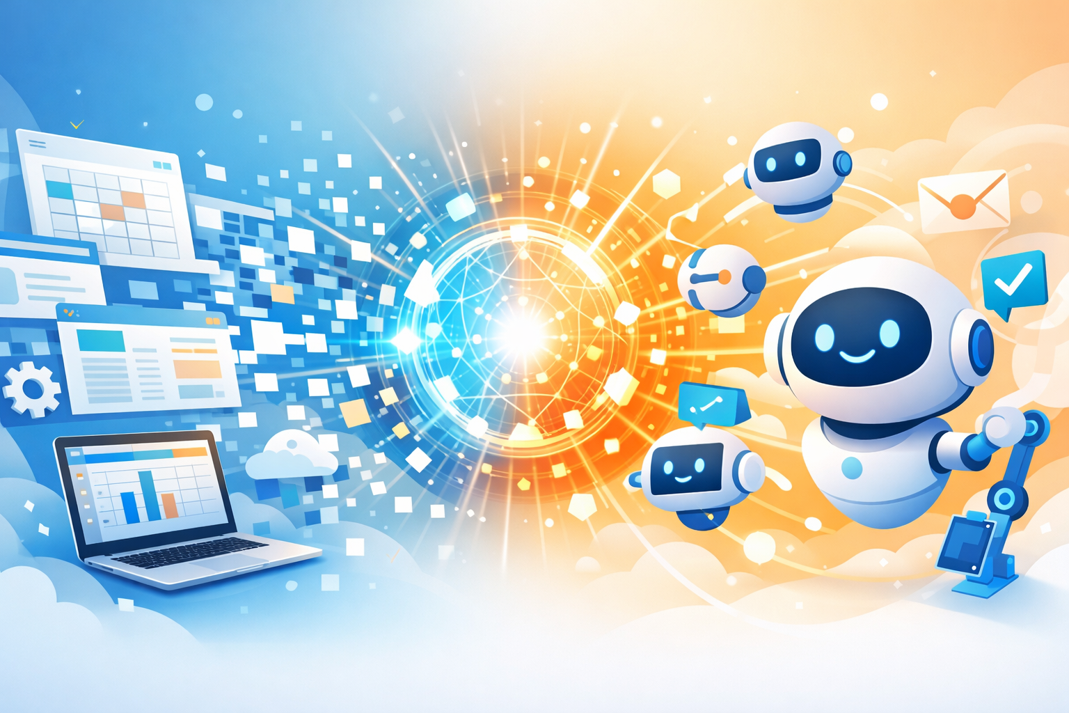 これまでSaaSは、人間がデータを入力して保存するための「ただの記録用の箱(System of Record)」に過ぎませんでした。しかし現在は、AIが自律的に考えて結果を出す「実行の主体(System of Agents)」へとソフトウェアの主役が交代しています。