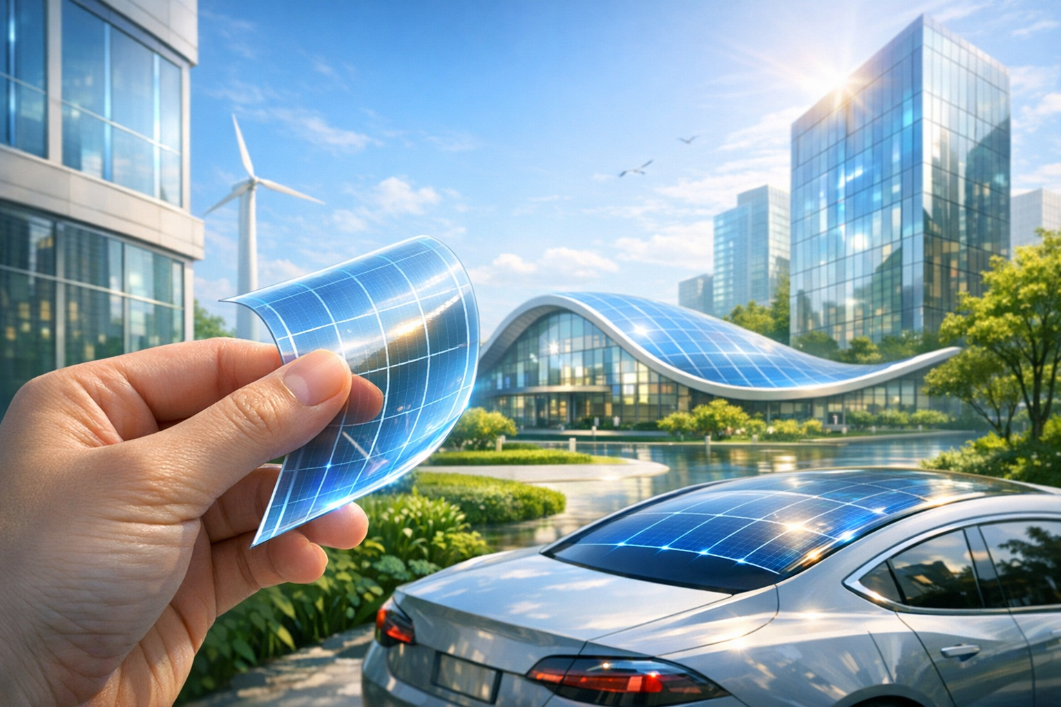 一つ目は「従来の太陽光パネルの弱点を完全に克服したから」です。これまでのシリコン製の重たいパネルは、頑丈な屋根や広い土地にしか設置できませんでした。特に、平地が少なく山だらけの日本においては、すでにメガソーラーを設置できる場所は限界に達しつつあります。しかし、軽くて曲がるフィルム型であれば話は別です。強度の弱い古い建物の屋根はもちろん、ビルの壁面、カーポートの丸い屋根、さらにはテントの表面など、ありとあらゆる場所にテープのように貼り付けて発電させることができるのです。