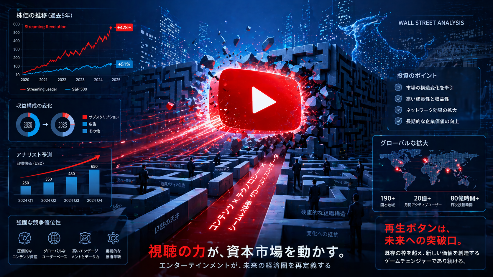 また、ネットフリックスがワーナーの買収に動いていたという事実そのものが、市場に複雑なメッセージを与えました。これは同社が「自社制作のオリジナルコンテンツだけでは、今後の熾烈な競争を勝ち抜くためのIP(知的財産)やライブラリが不足する」という危機感を抱いていることの裏返しとも解釈できます。